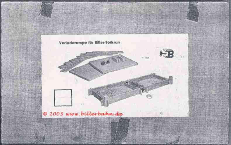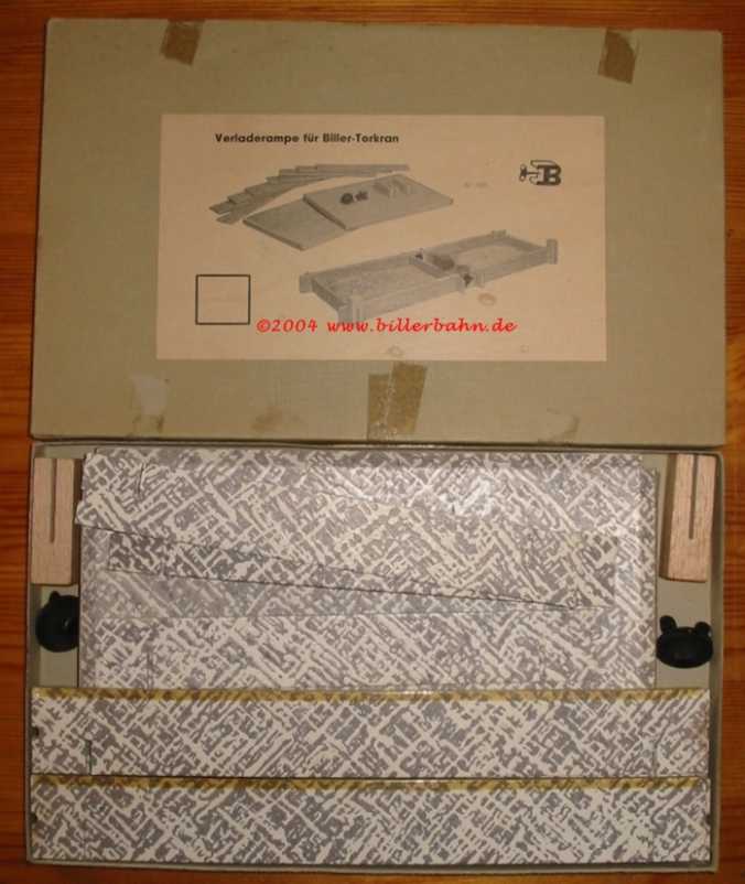 offered from 1963 for self-assembly. The complete layout is made of card board paper. See the instruction for assembly details. This ramp could be used for the giants 1800 E and 1816. Seize: assembled 480 x 180 x 45 mm - the box 247 x 153 x 15 mm - Novelty 1962 |
