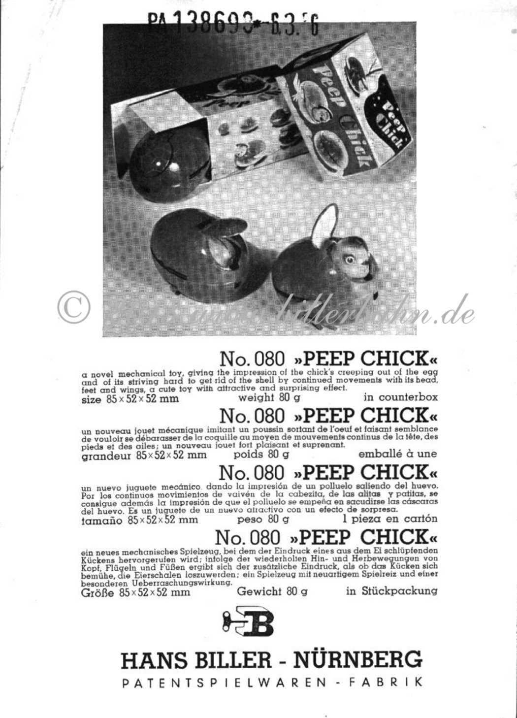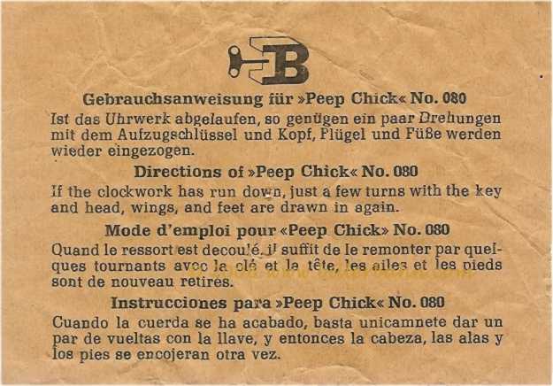 leaflet. The Peep Chick was clockwork-driven and was delivered in a