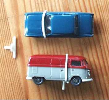 Attaching a plastic pin, fixed by means of a normal rubber band