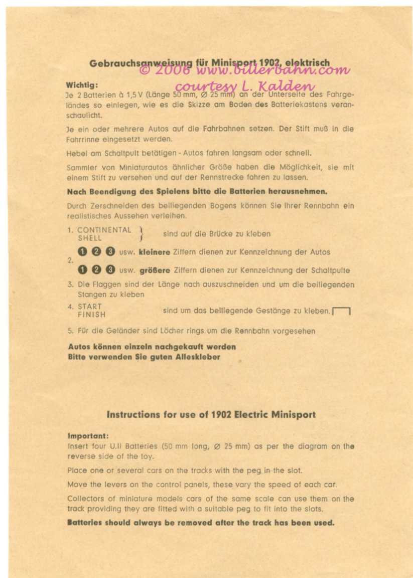 inserted from underneath into the "Pit Stop areas". Accessories were