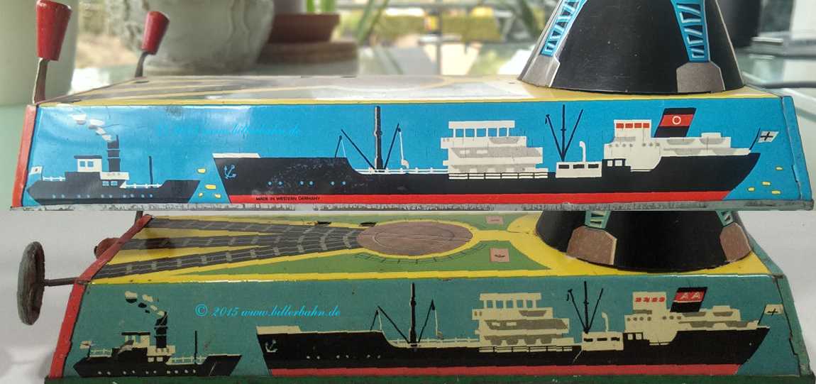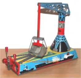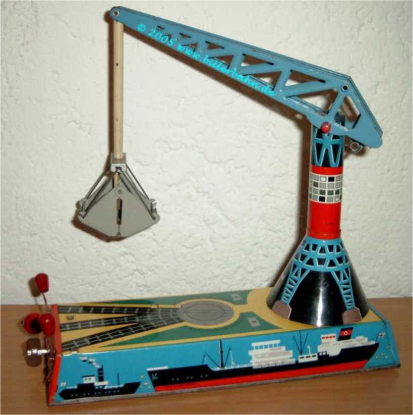 instead using a clockwork this toy is rotated by a hand wheel - right side