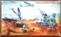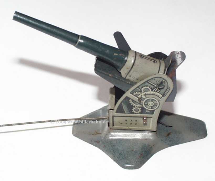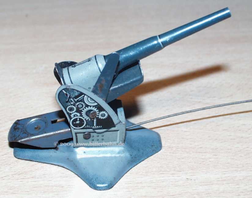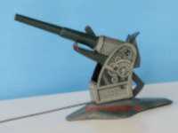 | the AA-gun, height 70 mm and 90 mm of length, lithography is the same on both sides - this picture shows the gun after being "fired" | the AA-gun "ready to fire" - the clockwork is running | ||